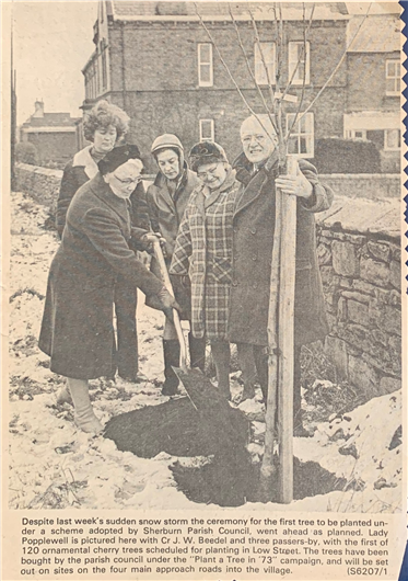 | Sherburn Parish Council’s ‘Plant a Tree’ campaign has it’s first tree planting , as planned, by Lady Popplewell ~ 1973 |