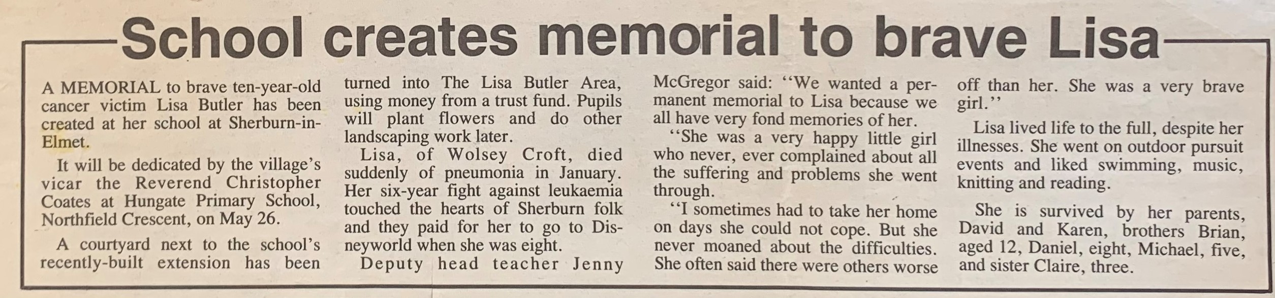 | Lisa Butler memorial - The Star - 20.May.1993 |
