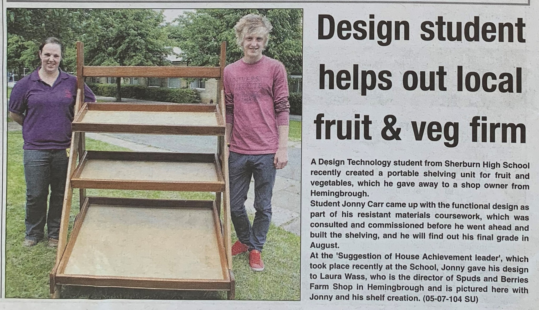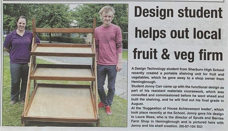 | Sherburn student creates portable shelving unit as part of his coursework. - Selby Times ~ 5.Jul.2012 |