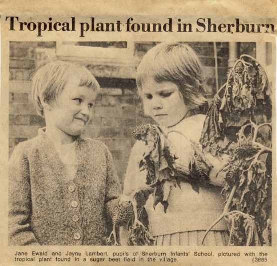 | Jane Ewald and Jayne Lambert with a tropical plant found in a Sugar beet field in Sherburn |