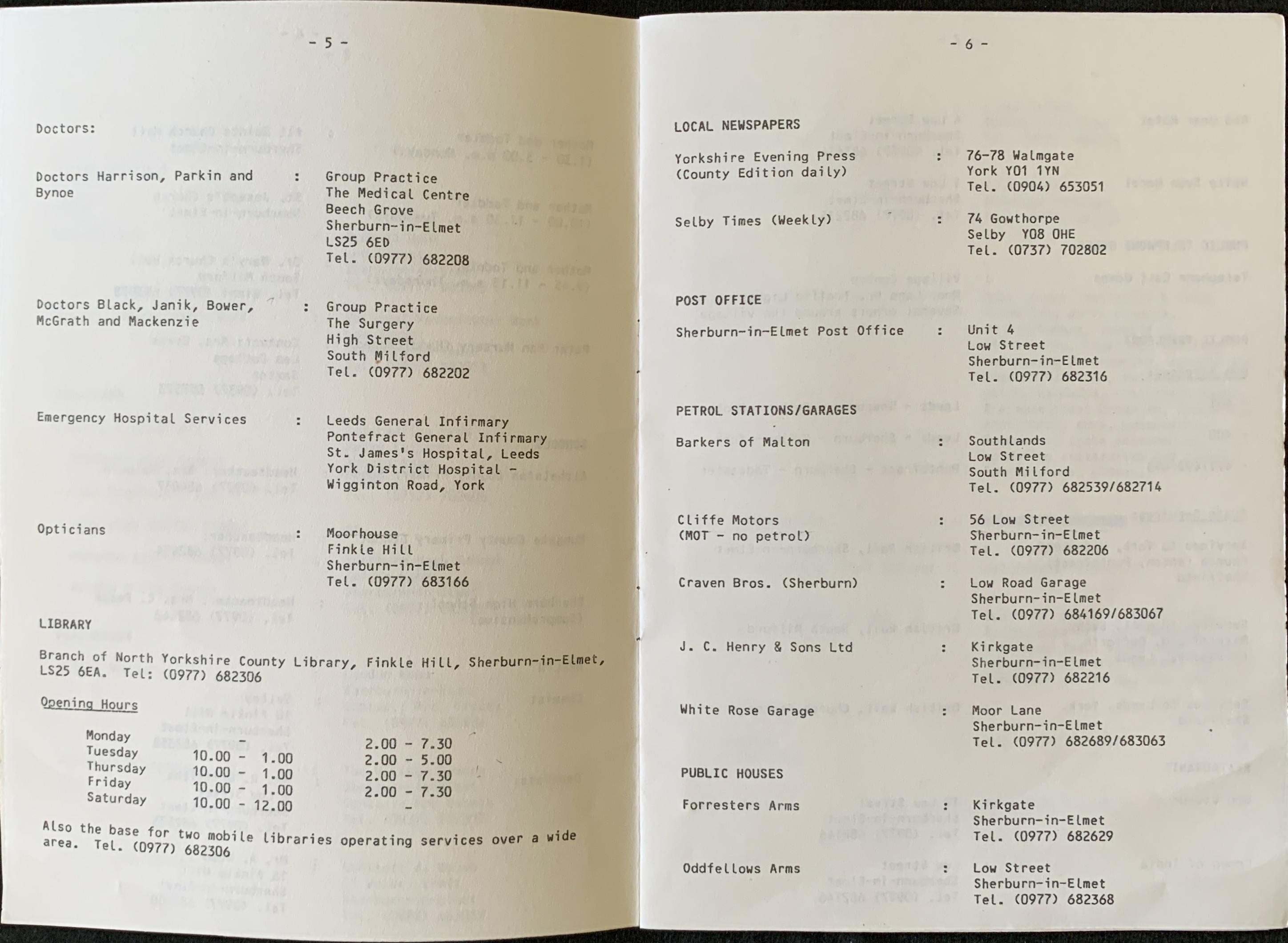 Residents Guide to living in Sherburn in Elmet (1992) (page 4/10)