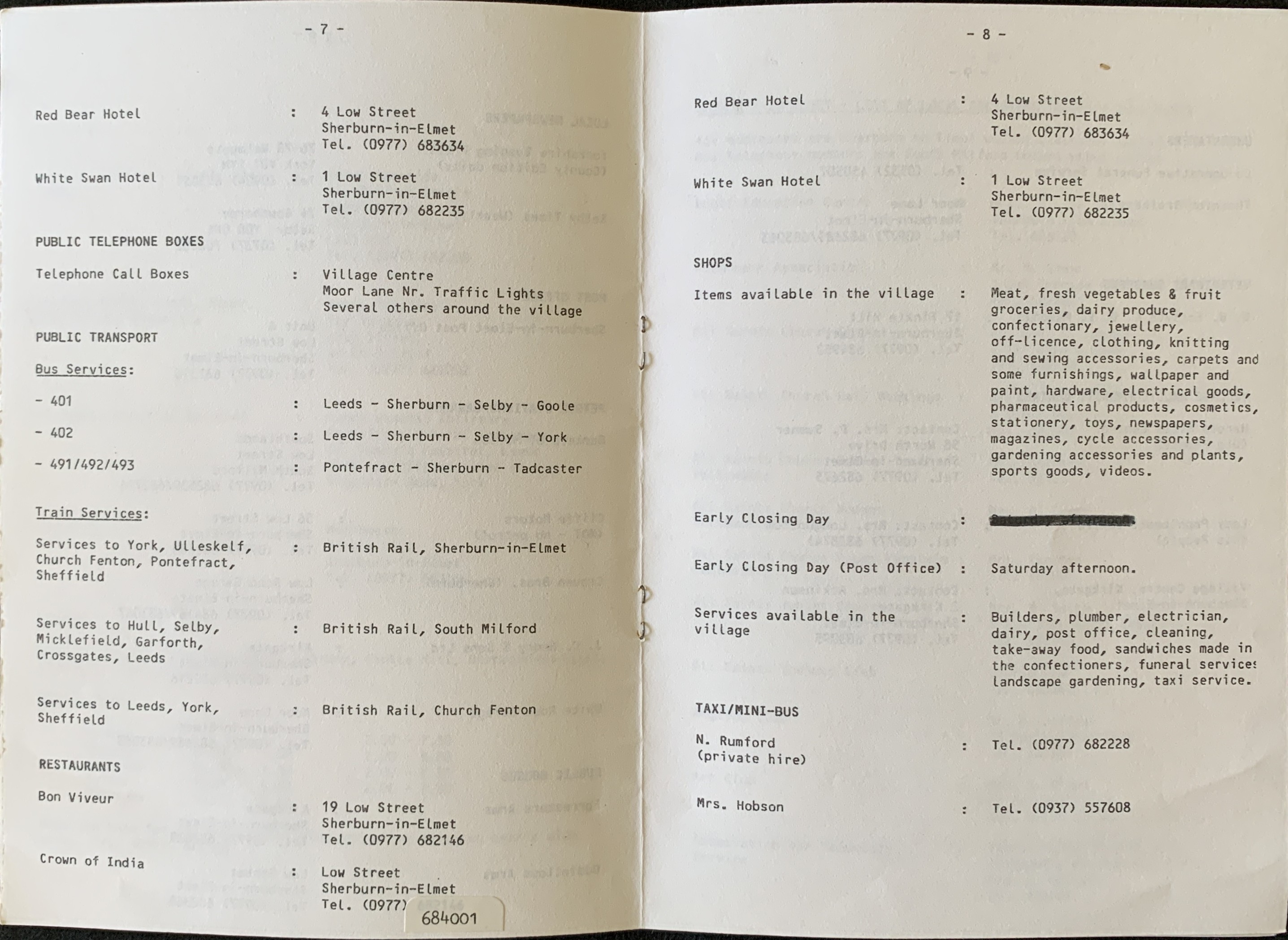 Residents Guide to living in Sherburn in Elmet (1992) (page 5/10)